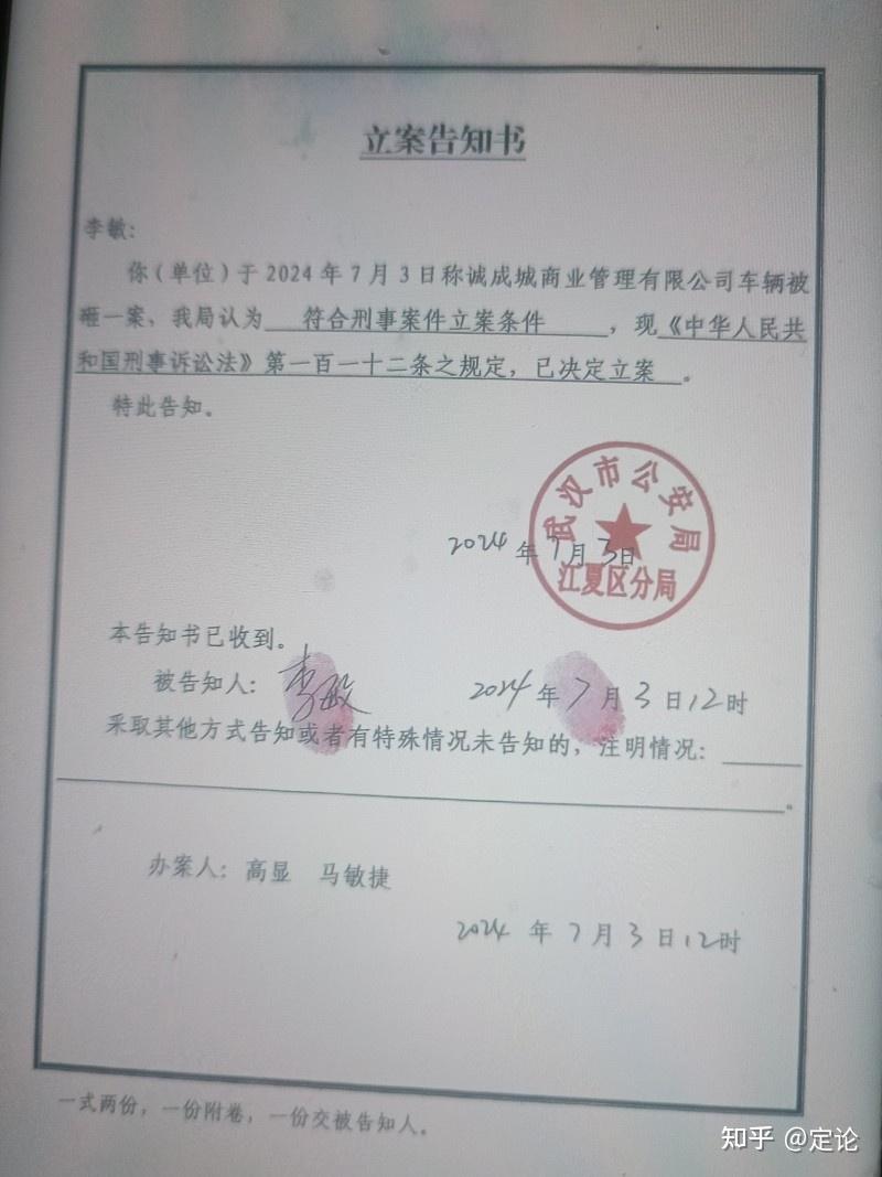 商场豪车被砸立案告知书