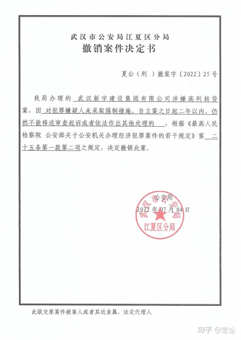 高利转贷撤案通知书